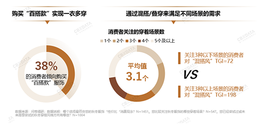 在功能性之外,消費者對秋冬服飾的需求也逐漸向“質價比”轉變?!靶詢r比“雖是消費者購買秋冬服飾的主要考慮因素,但并非意味著追求絕對低價。一方面,消費者會通過購買“百搭款”實現一衣多穿,還會以“混搭”的方式滿足不同場景需求;另一方面,消費者愿意為服飾品質買單,從單純考慮性價比過渡到追求“質價比”。