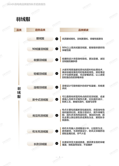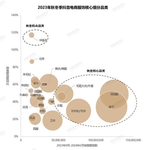 具體到羽絨服、毛呢大衣、沖鋒衣等核心品類,抖音電商通過分析2023年抖音電商秋冬季服飾銷售中呈現出不同的趨勢變化,對于商家們把握今年品類銷售重點具有一定借鑒價值: