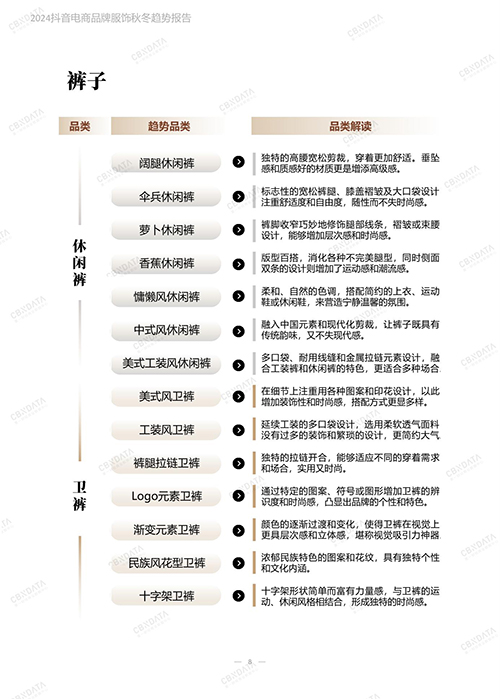 褲子:休閑褲、衛褲表現突出,細分褲種增長強勁