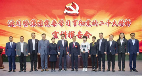 會上,周海江從黨的二十大會議盛況、二十大報告主要內容及深入學習貫徹落實黨的二十大精神等多個方面為波司登全體黨員作了深入的解讀,并列舉剖析了黨的二十大報告中的一系列新專題、新論斷、新提法,同時結合紅豆集團工作實際,分享了民營企業學習貫徹落實黨的二十大精神的特色做法和經驗舉措,給波司登全體黨員作了一個生動、深刻的報告,贏得了全場共鳴。