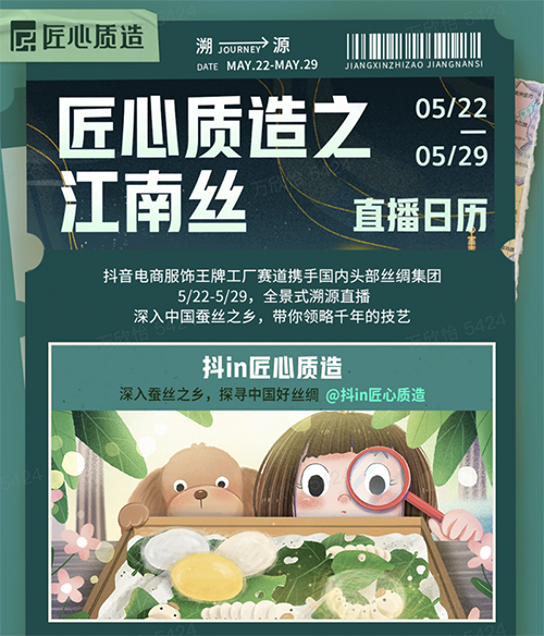 此次抖音電商「王牌工廠」“匠心質(zhì)造之江南絲”活動,開啟了一場云逛中國好絲綢的溯源之旅。隨著商家直播間短視頻,消費者沉浸式體驗從養(yǎng)蠶、繅絲、捻線、織造、印染,到成衣的過程,360°全鏈路感受中國匠心質(zhì)造的魅力,領(lǐng)略千年的傳統(tǒng)絲綢工藝。從源頭打消用戶的下單顧慮,讓更多消費者深度了解優(yōu)質(zhì)絲綢特性、看見屬于中國的匠心絲綢。