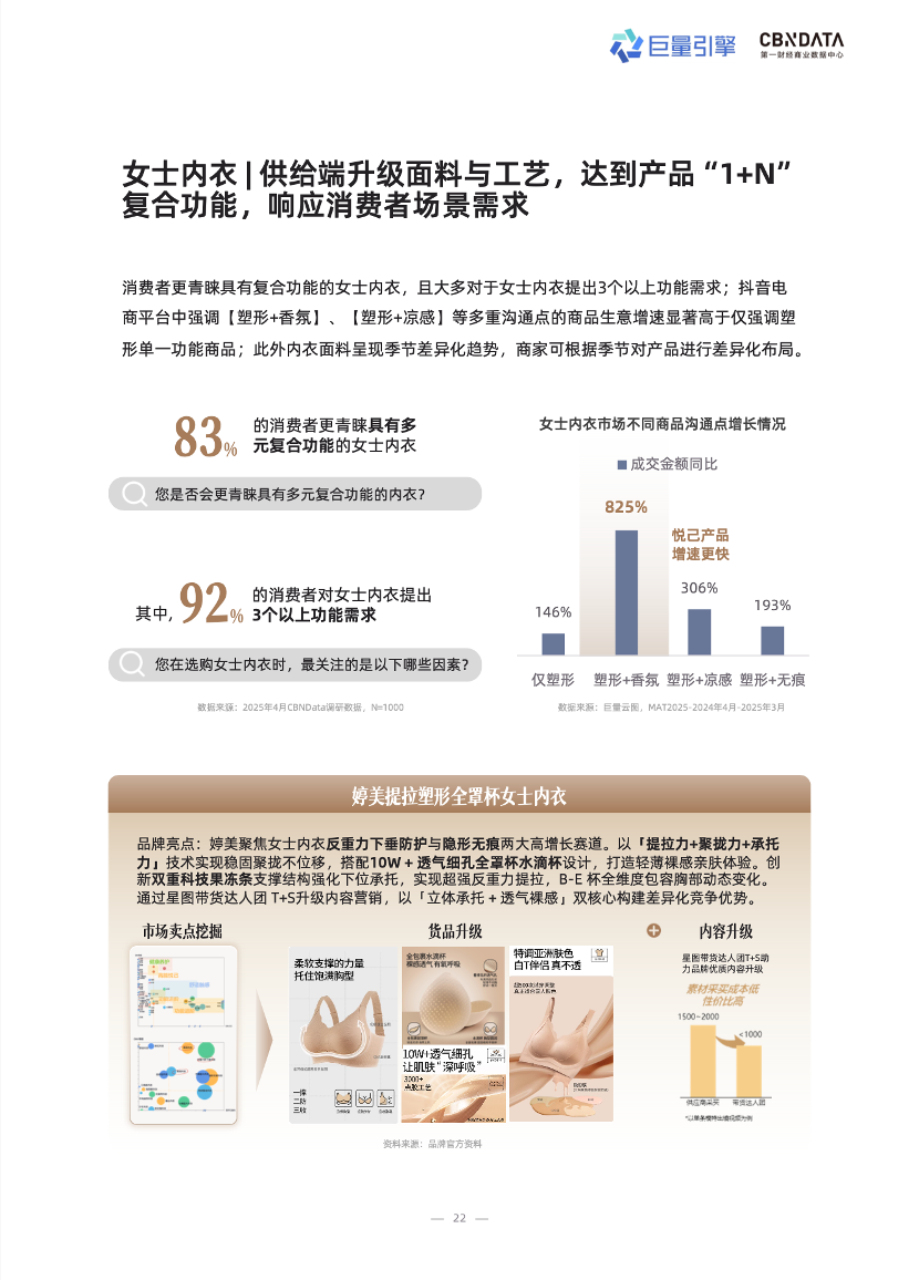 ![]() 01 女士內衣:多元場景需求增長顯著,“1+N”復合功能產品更受青睞